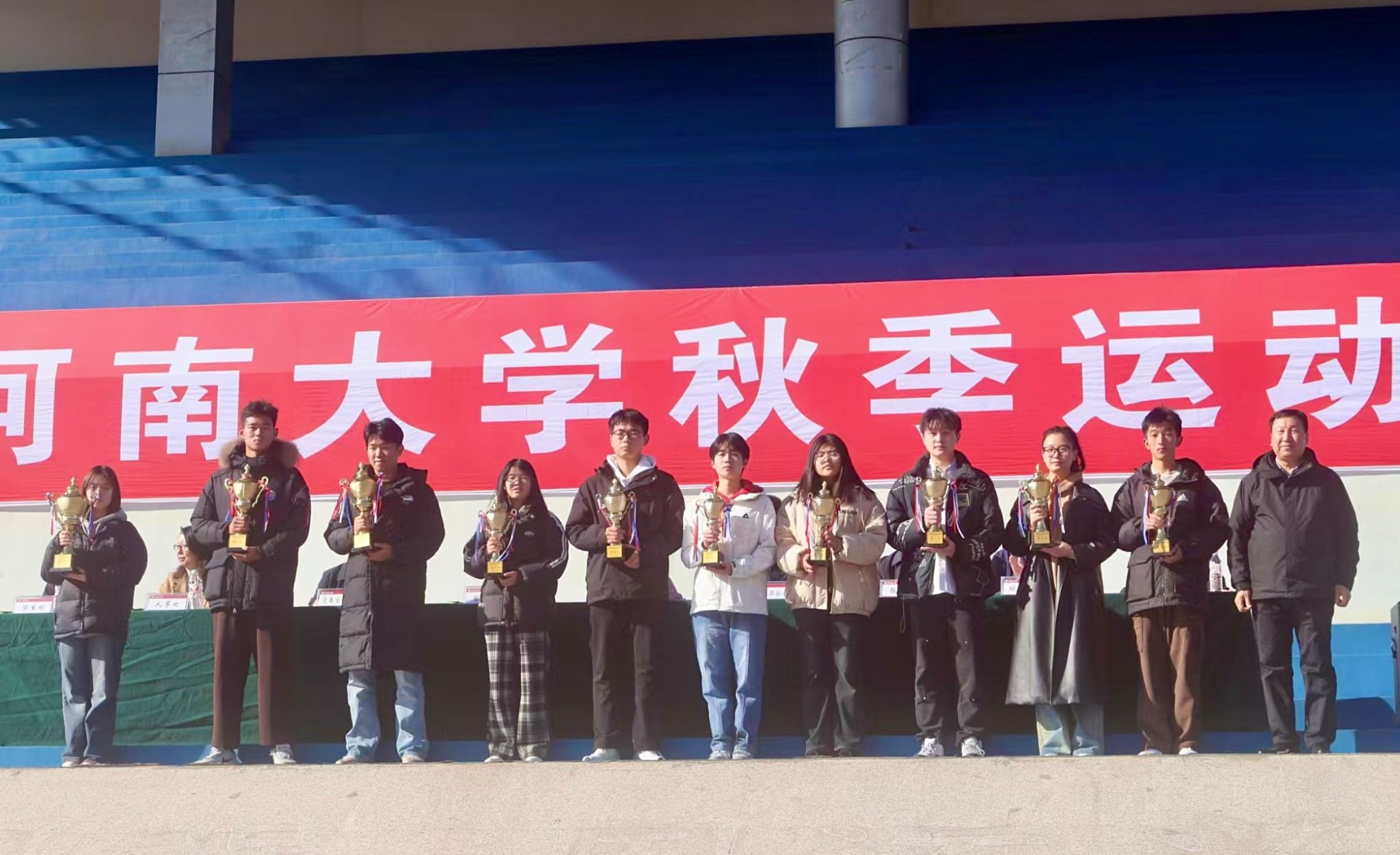 秋日赛场竞风流,团结一心创佳绩。在此次运动会中,我部运动员们奋勇争先,用速度与激情、力量与技巧,生动诠释了顽强拼搏的体育精神。长跑比赛中,他们步伐沉稳而有力,一步一步向着终点奋勇迈进,那坚韧不拔的毅力令人动容;接力赛场上,接力棒如同希望的火炬,在队员们手中稳稳传递,速度与默契相得益彰、完美配合。每一场比赛,皆为自我挑战,每一次超越,皆为梦想追逐。优异成绩的背后,是我部运动员们无数日夜的默默付出。他们不畏烈日骄阳,在跑道上挥汗如雨,纵使衣衫尽湿亦从未言弃;他们不惧疲惫辛劳,在训练场上一次次地挑战自我,哪怕筋疲力竭也咬牙坚持。这些优异成绩的背后,同样离不开地理科学与工程学部全体师生的大力支持。学部上下携手共进,众志成城,以青春的澎湃激情,铸就了独属于地理科学与工程学部的璀璨篇章。