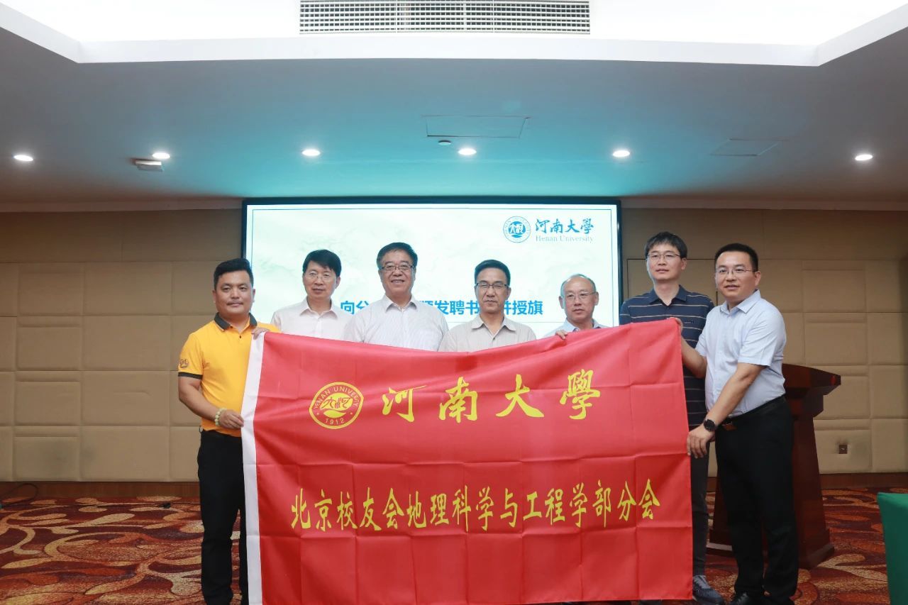 宋永鹏宣布best365网页版登录官方网站北京校友会地理科学与工程学部分会正式成立,并宣读了第一届理事会成员名单。傅声雷向会长郑新奇颁发聘书并授旗。苗长虹、乔家君、潘少奇分别为当选的副会长、秘书长、副秘书长及理事们颁发聘书。
