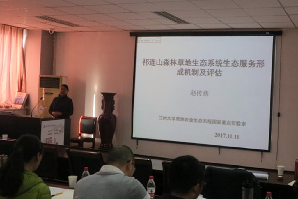 兰州大学草地农业生态系统国家重点实验室赵传燕教授以“祁连山森林草地生态系统生态服务形成机制及其评估”为题开始了本次会议的第一场报告。随后,郑州大学荐圣淇博士做了“黄土高原丘陵沟壑区人工植被生态水文过程研究”的报告;中科院寒旱所陈仁升研究员做了“气候和冰冻圈变化对黑河和中国寒区流域径流的影响”的报告;兰州大学李常斌教授围绕洮河流域的区域尺度生态水文的问题做了报告;兰州大学徐浩杰博士以“亚洲内陆干旱区植被对气候变化的响应”为题做了报告。除校外专家外,我校童海滨博士、武广洋博士、曹艳萍博士、张乐涛博士、朱文博博士和赵芳博士等多位年轻优秀的科研工作者也就自己研究领域做了深刻详细的报告。