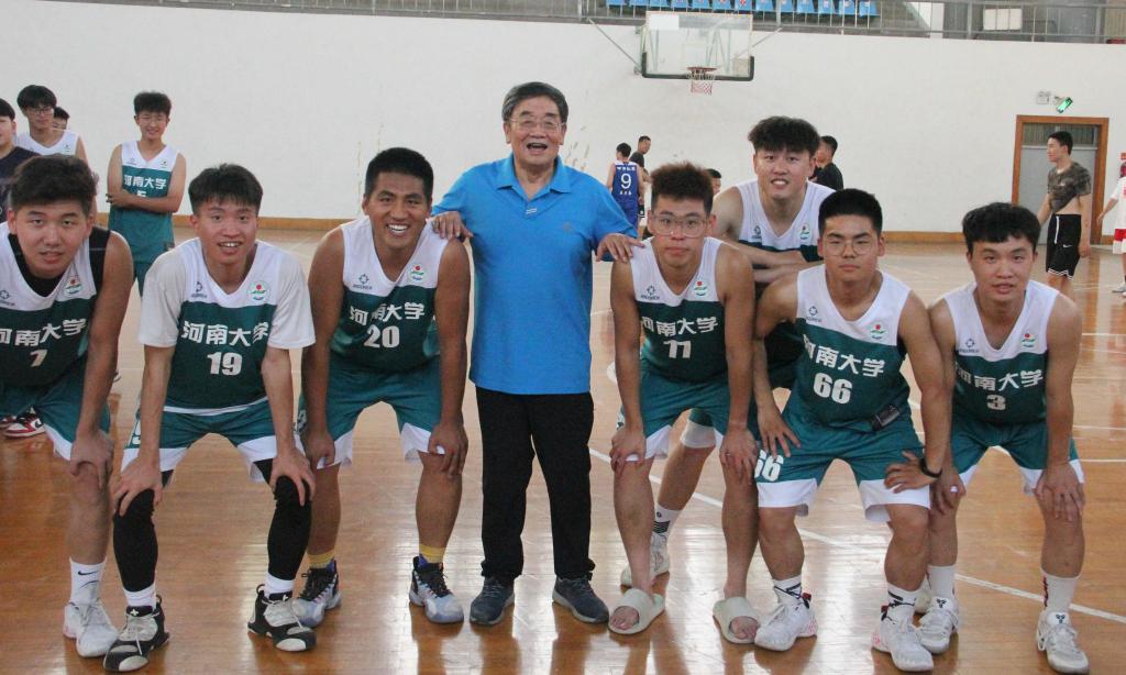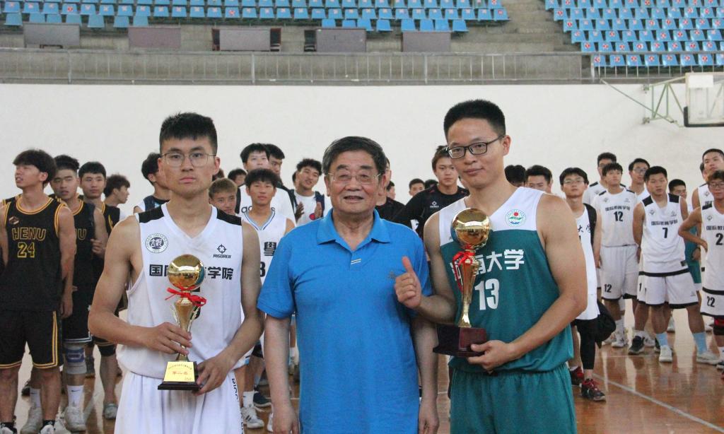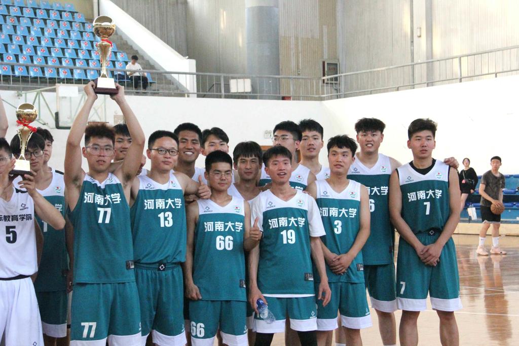 下半场,对方调整阵型,改变战术,奋起直追,我方保持进攻节奏,成功瓦解对方犯规战术,大比分拿下比赛胜利。在第三节比赛中,77号吕天琦抓住对方防守空挡,空位飙进三分,场上掌声、呐喊声骤起。随后我方球员与对面紧张地拉扯,采用迂回战术,以严密默契的配合、灵活敏捷的走位,连续拿下了多个两分球,而对方进攻端哑火,只得赔上犯规来压制我方进攻火力,对方节节败退,分差被持续拉大。最终,best365官网以压倒性的优势拿下胜利,夺得本届“河大杯”男篮总冠军。最后,王发曾教授为双方球队颁奖,并与到场老师一同合影留念。