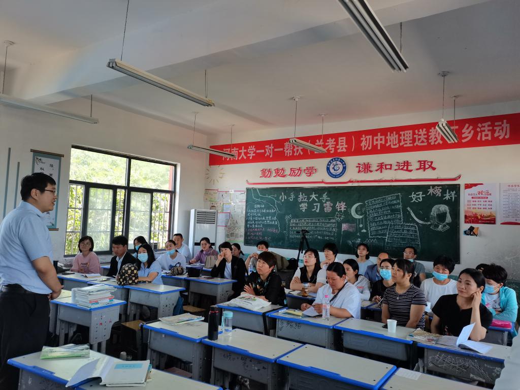 2021年6月4日,best365网页版登录官方网站一对一帮扶初中地理送教下乡活动在兰考县顺利开展。best365网页版登录官方网站环境与规划学院继续教育中心主任仝致琦,best365网页版登录官方网站环境与规划学院副教授、硕士生导师张广花前往兰考县开展本次一对一帮扶活动,并邀请郑州市教研室地理教研员、河南省学科带头人、郑州市名师赵丽霞,开封市集英中学一线(地理)骨干教师谢奥宇参与。