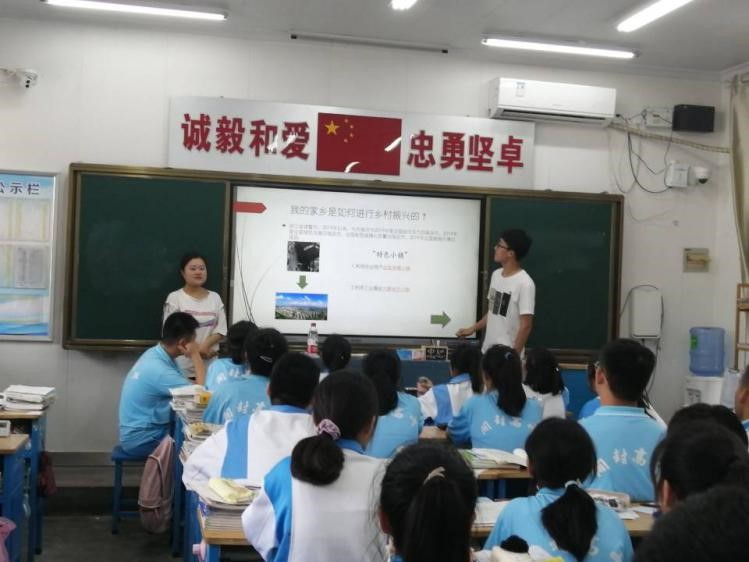 7月16-19日,团队根据各班实际情况开展了形式多样的特色课堂。团队成员以图文结合的方式向学生展示了新时代农村精准扶贫的历史影像和乡村振兴取得的战略成果。通过团队成员的讲解,学生对我国农村发展现状有了更深刻的认识。同时,成员们勉励学生爱家乡、爱祖国,立志成学,为建设美丽乡村贡献自己的力量。