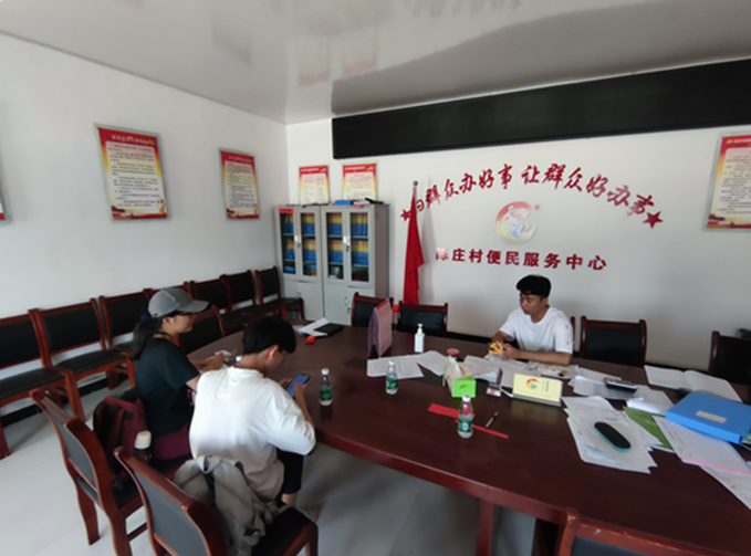 团队成员在党员活动中心采访陈庄村工作人员