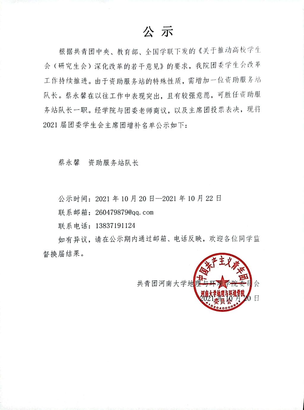 best365网页版登录官方网站2021届团委学生会主席团增补名单公示