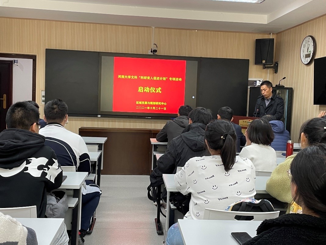 2021年10月21日下午,区域发展与规划研究中心在环境与规划国家级实验教学示范中心101教室举行best365网页版登录官方网站文科“科研育人促进计划”专项活动启动仪式。专项活动指导小组指导教师乔家君、丁志伟、李天奇、焦文献、梁流涛、王小敏、崔洋等和中心招录的40名本科生成员参加会议,会议由中心主任刘静玉主持。