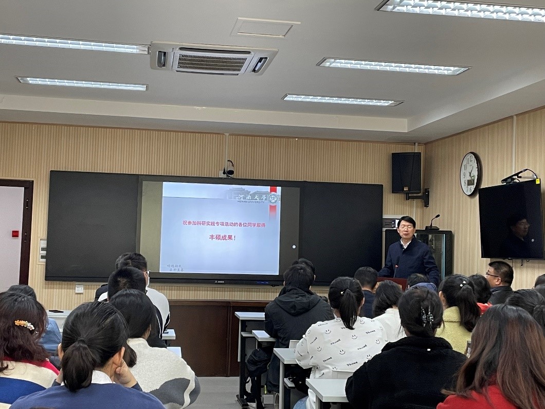 刘静玉从发展沿革、师资力量、服务社会和科研成果等方面对中心做了简要介绍,以第一批次“科研育人促进计划”成果为切入点,着重介绍了本批次活动的背景、主题和具体要求,希望通过本次科研实践,提升同学们“发现与确定科学问题”、“进行科学的研究设计”、“解决科学问题”三个方面的能力,最后,刘老师鼓励参加“科研育人促进计划”的各位同学努力学习,取得丰硕成果。