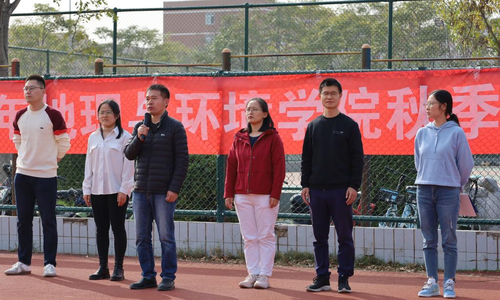 集体项目棍推乾坤的各班参赛队伍由八人组成,分为两组,每四人共持一根竹竿进行绕障碍物接力跑,学生们四人齐心协力,场外充满了欢声笑语。四人五足跑作为运动会上的常见项目之一,考验的是团队间的团结协作,只有配合默契,才能健步如飞。运动会最后,各参赛队伍之间进行了一场友谊拔河比赛,哨声起,操场上欢呼声加油声此起彼伏,震耳欲聋,参赛人员在赛场上为集体的荣誉拼尽全力。随后,在阵阵掌声和欢呼声中,运动会接近尾声,研究生队摘得比赛桂冠,19级地科班获得第二名,20级地信班获得第三名。