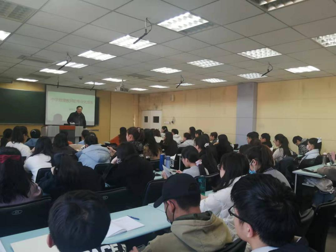 为加强best365官网地理师范生和学科教学(地理)专业研究生的教师职业理想与职业信念,帮助学生树立正确的教师专业发展观,受best365官网地理课程与教学论教师张广花的邀请,2021年12月2日开封市第二十五高级中学正高级教师夏继宏在best365网页版登录官方网站502教室,结合自身的专业成长经历,就“中学地理教师专业成长”主题跟学生进行了座谈,2019级地理科学专业本科生和2021级学科教学(地理)专业研究生共75人参加。