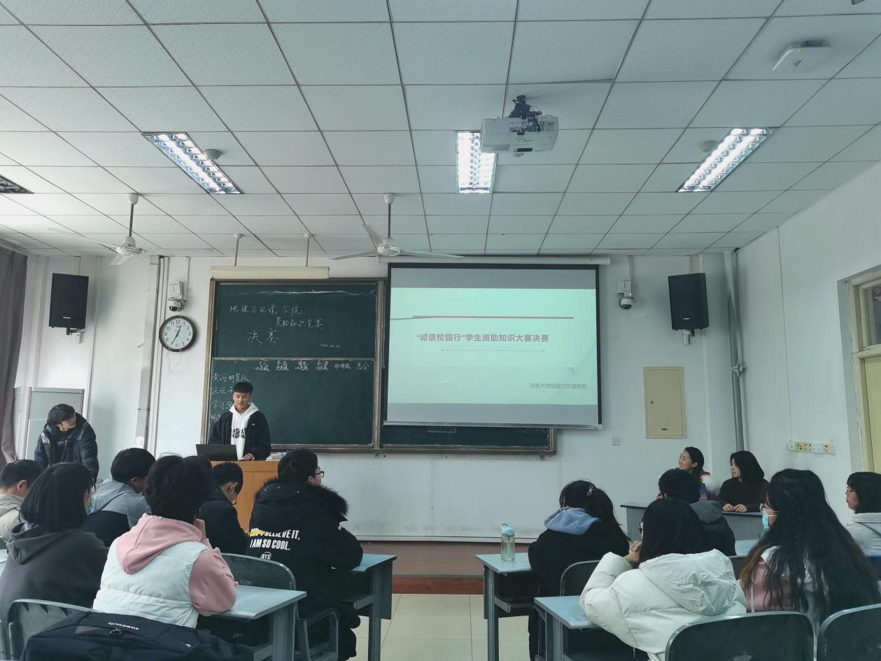为持续深入贯彻落实全国全省高校思想政治工作会议和全国全省教育大会精神,进一步营造形式多样、健康向上、格调高雅的高校诚信校园文化氛围,best365官网根据2021年10月新修订的《河南高校学生资助手册》组织进行了best365网页版登录官方网站“诚信校园行”学生资助知识竞赛。经过初赛的选拔,由晋级选手所组成的四支队伍于12月11日下午在金明校区综合教学楼5107进行best365网页版登录官方网站“诚信校园行”学生资助知识大赛决赛,比赛由2021级环境科学专业学生程嘉晖主持。
