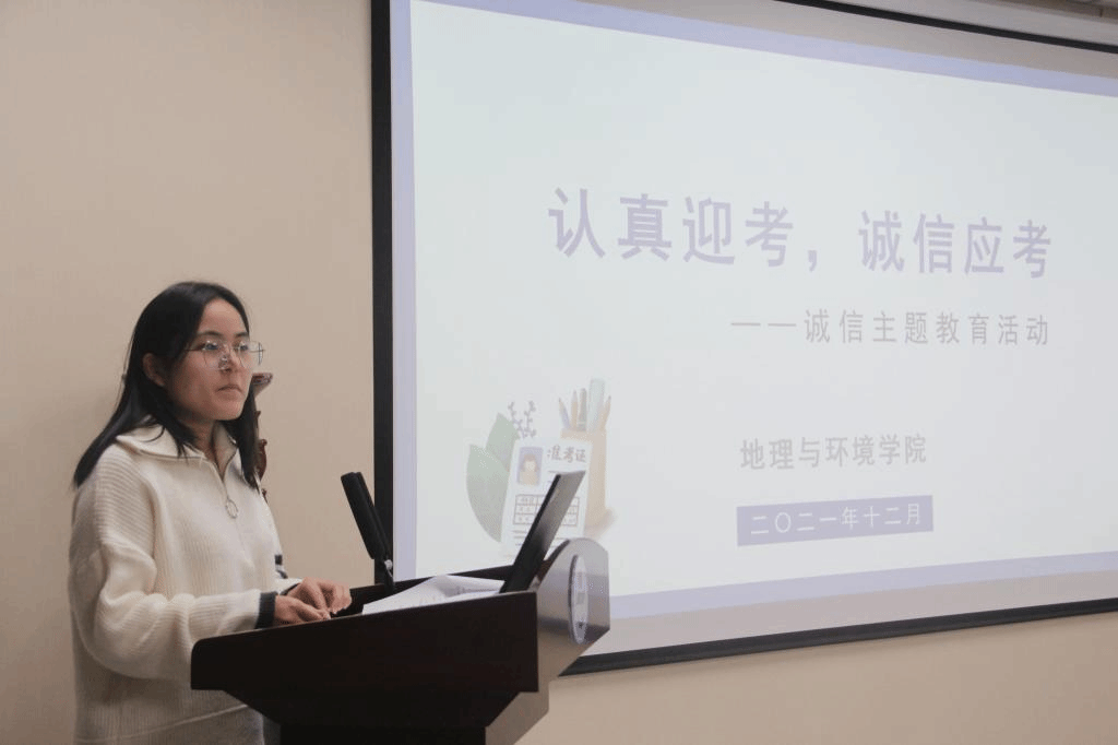 12月29日中午,best365网页版登录官方网站在地学楼二楼报告厅开展以“认真迎考,诚信应考”为主题的考前诚信教育。根据疫情防控要求,本次会议采用线上线下相结合的方式进行。best365官网党委副书记徐小军,团委书记、2019级辅导员赵越和本科生辅导员马利群出席会议,2019级、2020级和2021级全体本科生参加。会议由2021级辅导员屈利铭主持。