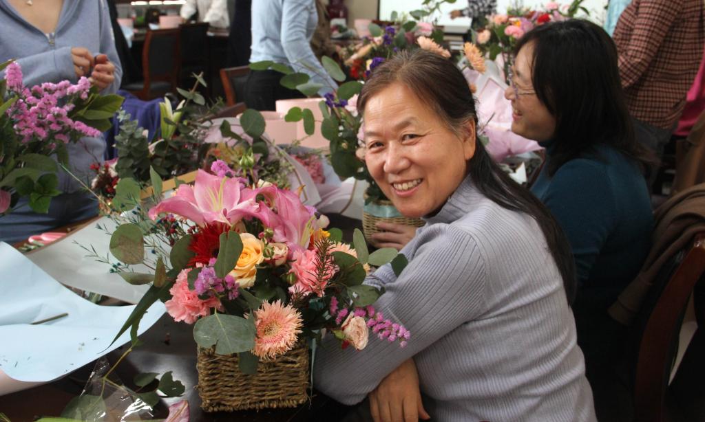 本次主题插花活动共有44名女教职工参加。活动开始前,邱永宽进行简短的发言,他赞扬了本次插花活动的意义,并为女教职工们送上节日祝福。活动邀请了专业的花艺老师现场指导,花艺师向女教职工们讲解了花材、色彩搭配等方面的知识,详细介绍了插花的艺术造型要素和技巧手法,并在现场做了生动的演示。接着女教职工们在插花老师的指导下,挑选花朵、修剪枝叶、整合造型,用灵巧的双手诠释了对花朵和美的理解。各色各样的花经过了她们的修剪整合,变成了一件件赏心悦目的艺术品。最后女教职工们和自己的插花作品进行合影留念。