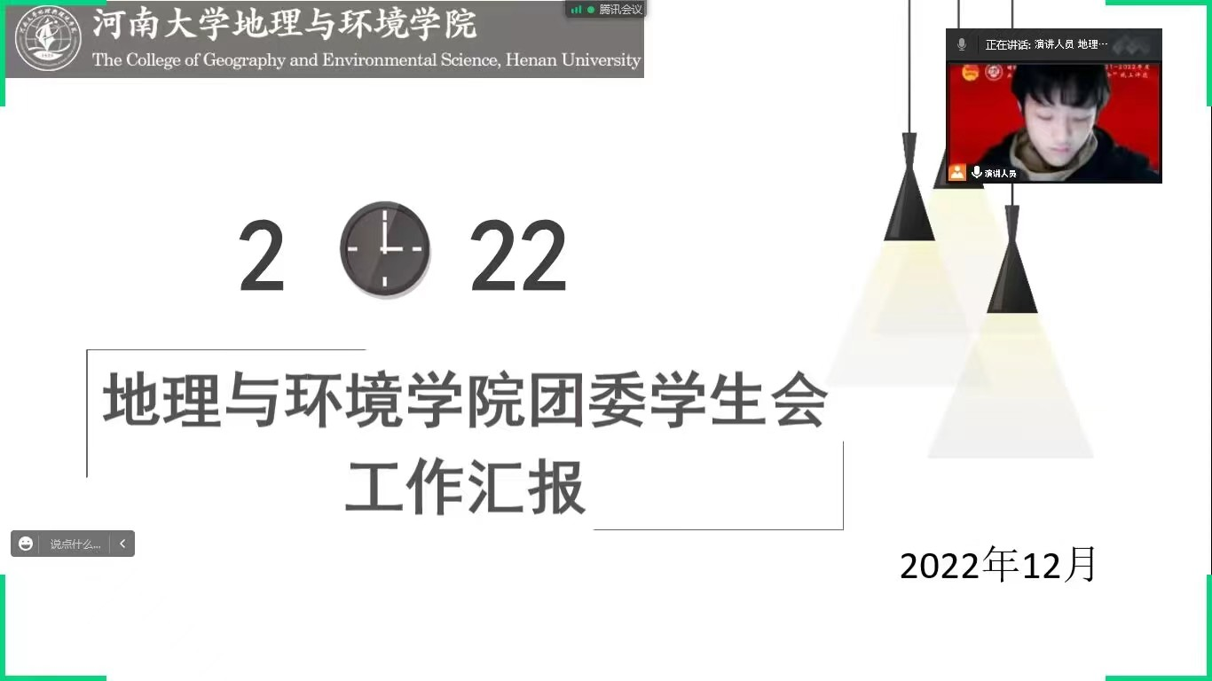2020级人文地理与城乡规划班江尚勋代表best365官网学生会进行汇报展示。他从部门改革、工作成果、经验总结和未来计划四方面展开讲解:best365官网学生会分为团委、学生会、新闻与网络媒体中心三个有机结合的组织,坚持贯彻落实“全心全意为同学服务”的宗旨。在工作成果方面,江尚勋着重展示了best365官网承办的地球日系列活动,总结经验并反思改进。汇报最后,他提出了未来学生工作的目标与计划。