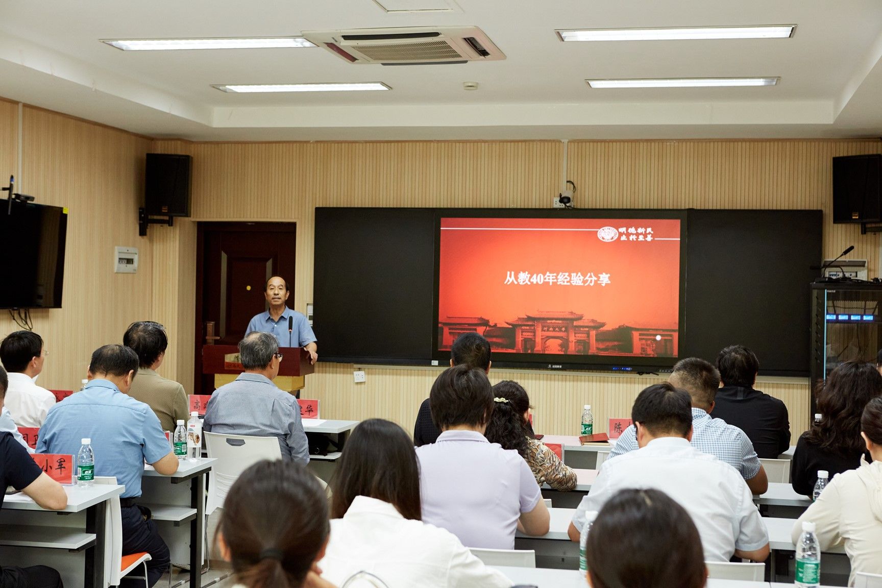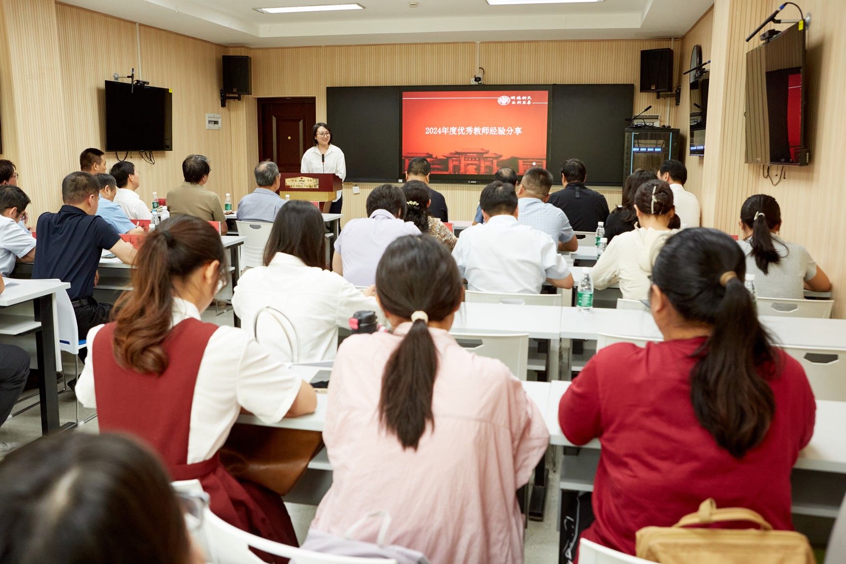 陈太政作为资深教师代表,向与会人员分享从教40年的感受。他为学院悠久的历史传承、卓越的学术成就、师生坚持不懈的奋斗精神感到尤为自豪,并坚信在学院领导和全体教师的带领下,学院的学科建设和教学工作会取得更加显著的成效,社会影响力和声誉也将逐年增强。随后,资深教师代表、学院党委书记乔家君、执行院长赵威向学院2024年度优秀教师代表颁发荣誉证书并合影留念。