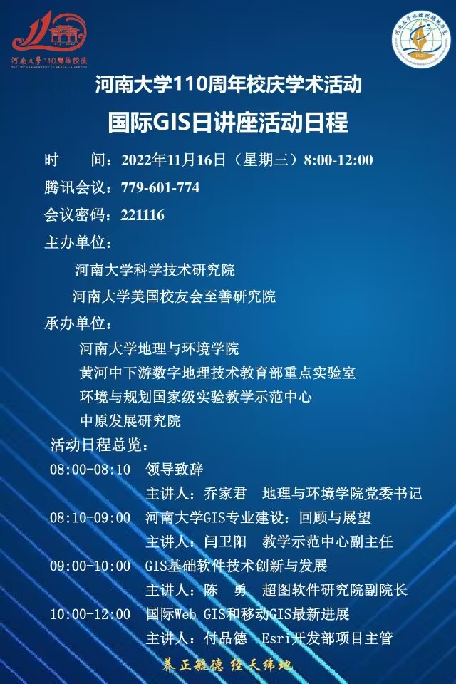 best365网页版登录官方网站110周年校庆学术活动:国际GIS日讲座活动日程