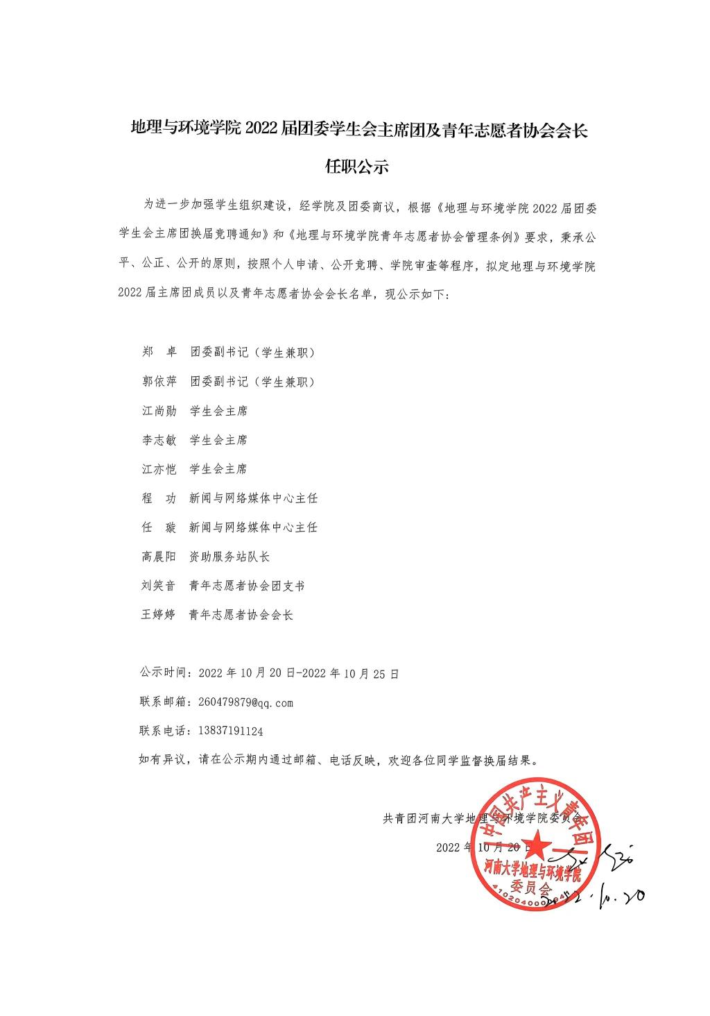【公  示】best365网页版登录官方网站2022届团委学生会主席团及青年志愿者协会会长任职公示