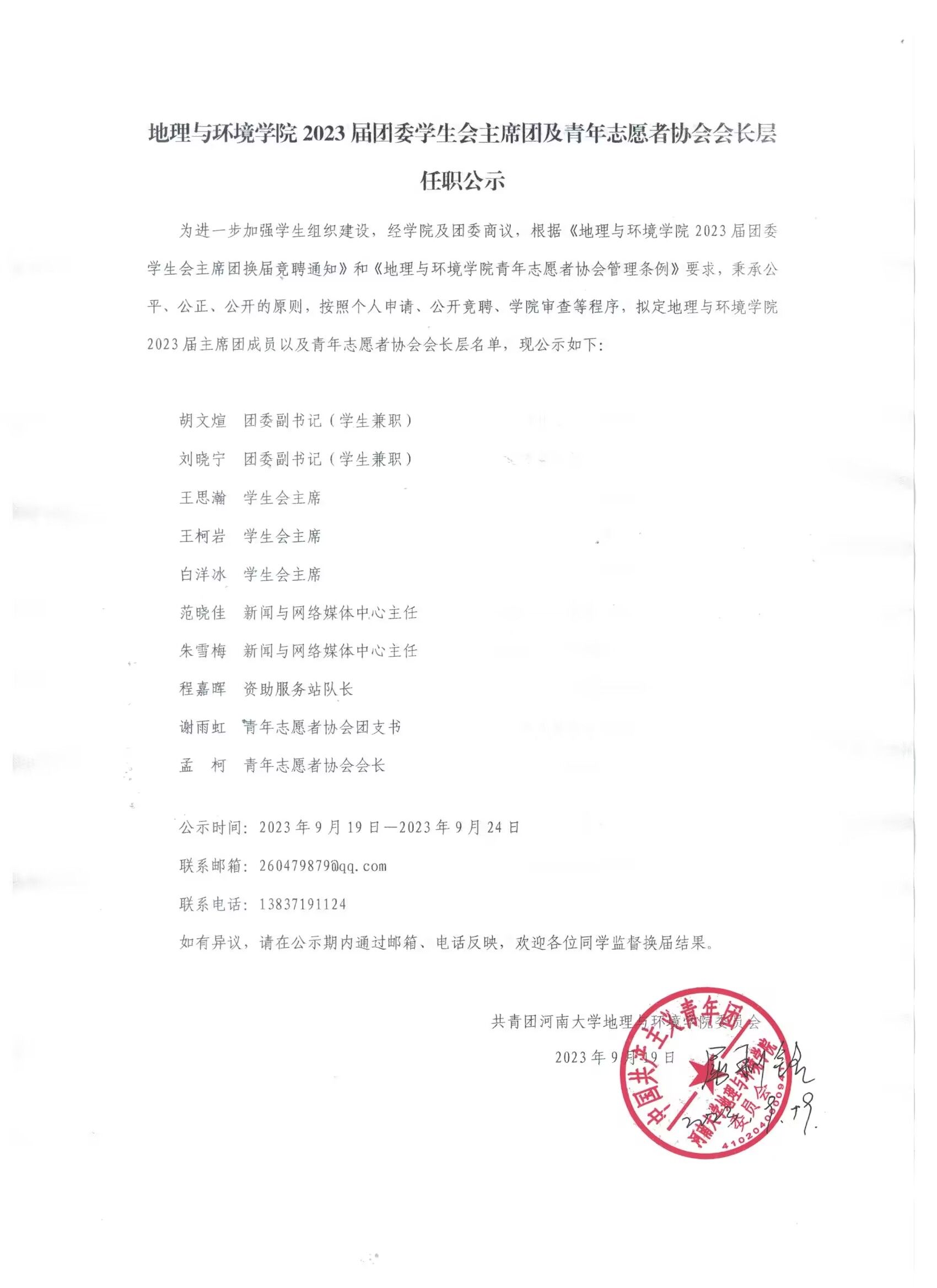 best365网页版登录官方网站2023届团委学生会主席团及青年志愿者协会会长层任职公示