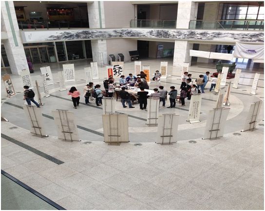 4月25日上午,由我校读书月组委会主办、书法协会承办的“尺素传真情 翰墨描风骨”书法展在金明校区图书馆一楼大厅隆重举行。众多书法爱好者参与此次活动。