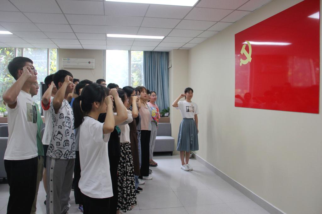 “我志愿加入中国共产党,拥护党的纲领,遵守党的章程......”预备党员同志们佩戴党徽,面向党旗,举起右拳,在党员代表的带领下,用激昂的声音庄严宣誓。铿锵有力的宣誓声引导同志们时刻牢记党员身份,不忘党旗前许下的铮铮承诺。