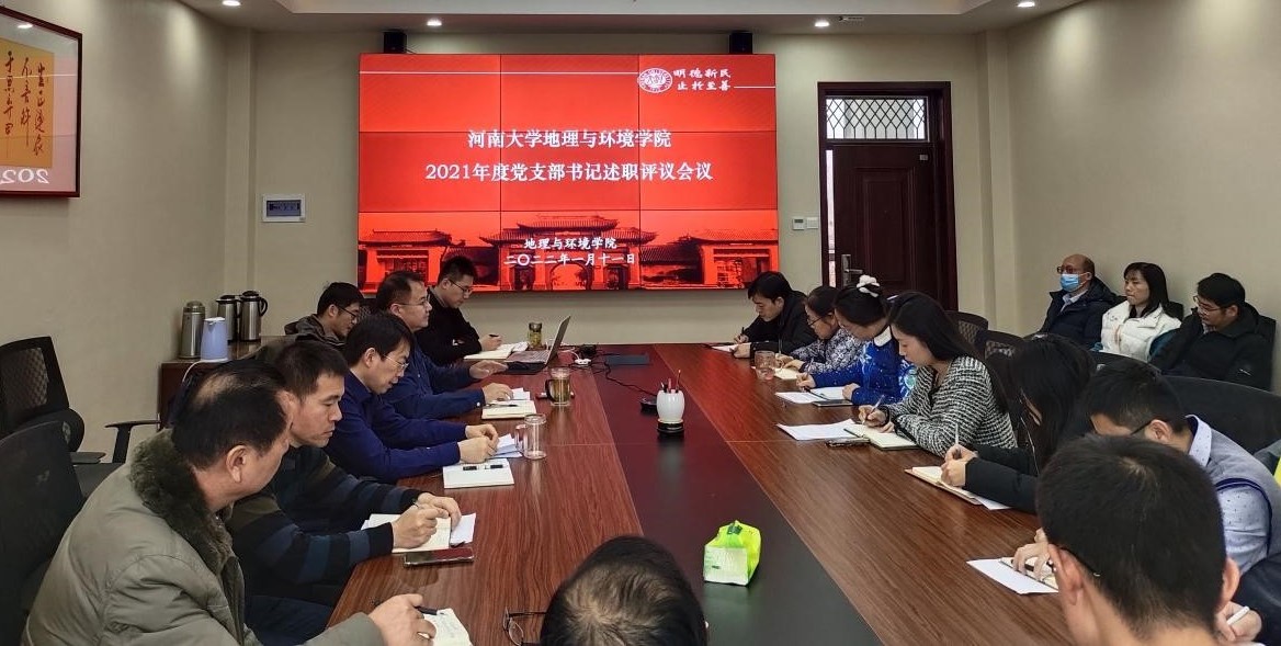 会上,执行院长、党委副书记乔家君首先从党建和行政两方面对2021年学院工作做出总结。随后各支部书记认真汇报所在党支部2021年所取得的工作成绩、工作开展情况、问题困惑及下一年度工作重点等内容。地理信息科学系党支部书记闫卫阳指出坚持学习党史与学院中心任务相结合,学习党史与师德师风、理想信念教育相结合,学习党史与课程思政相结合。行政教工党支部书记谷蕾把握新时代新媒体特点,以传统线下学习为中心,积极开辟微信群、公众号和各类网站、会议软件等学习阵地,线上线下相结合,利用学习强国软件中更新的版块,进一步提升学习积极性。城市区域科学系党支部书记丁志伟则通过教师教学技能竞赛,课程思政,科研育人以及与学生面对面的沟通答疑等四项措施,坚持教学与科研双轮驱动,强化学生综合能力培养。本科生第一党支部书记时振钦强化党员发展管理,严格实施“双推双评三全程”党员发展程序,并充分发挥党支部作用,为学生提供心理、资助、考研、就业信息等服务。本科生第二党支部书记赵越进一步优化了“2+n+x”多维网络思政学习模式,扎实推进“两化一创”,完成学校“样板党支部”终期验收材料整理工作。述职结束后,参会人员分别对每位支部书记进行了现场评议。