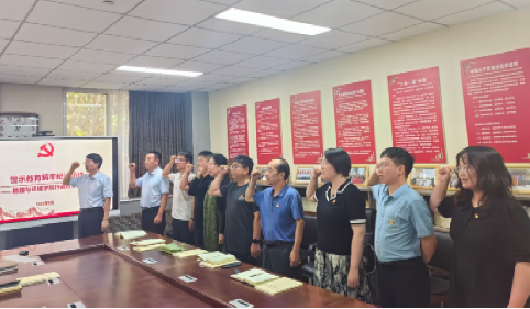 临近七一,支部党员在党委书记乔家君带领下,重温入党誓词,不忘初心、牢记使命,以誓词激荡遵纪守规的决心、以誓词激荡干事创业的决心。