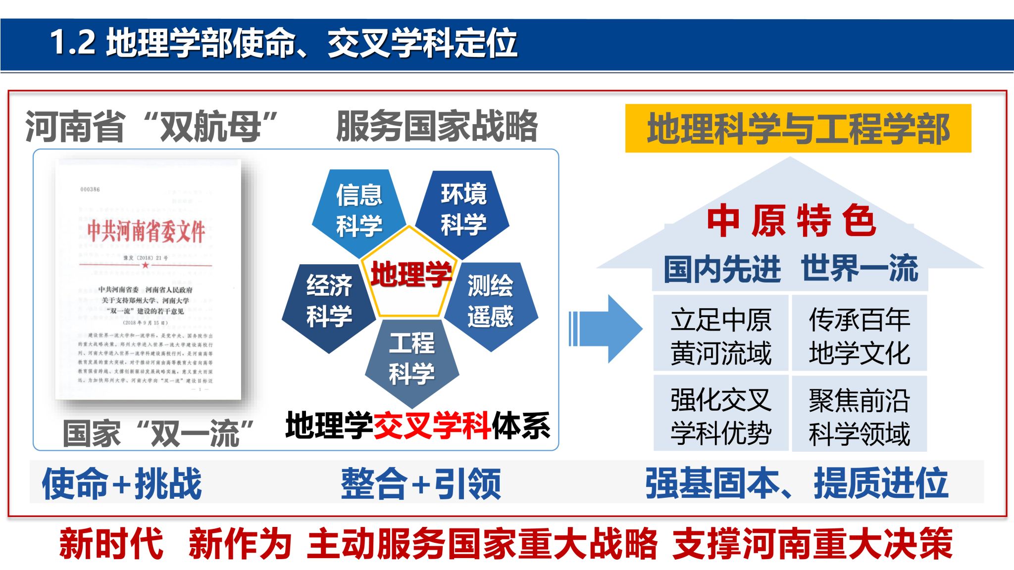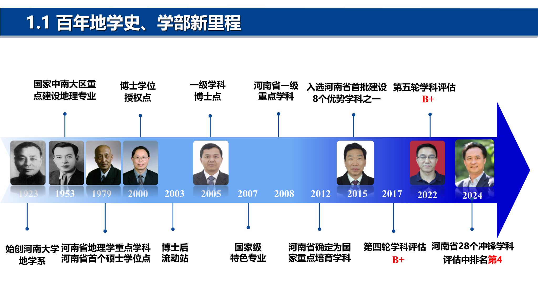 学部前身始于1923年中州大学(best365网页版登录官方网站前身)的地学系,首任系主任为著名地学家、中国科学院学部委员(中国科学院院士)冯景兰教授。经过几代地理人的筚路蓝缕、奋力拼搏,地理科学与工程学部在教学科研、学科建设、人才培养、社会服务等方面取得了突出的成绩,得到社会各界一致赞誉。地理学科在国家第四、第五轮学科评估中为B+位次,2024年在河南省28个冲锋学科评估中排名第4。