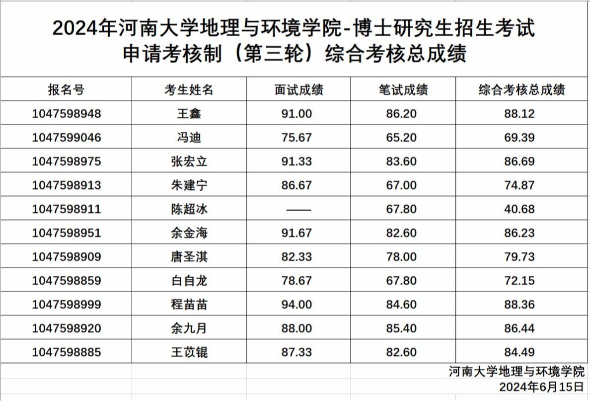 2024年best365网页版登录官方网站—博士研究生招生考试申请考核制(第三轮)综合考核总成绩
